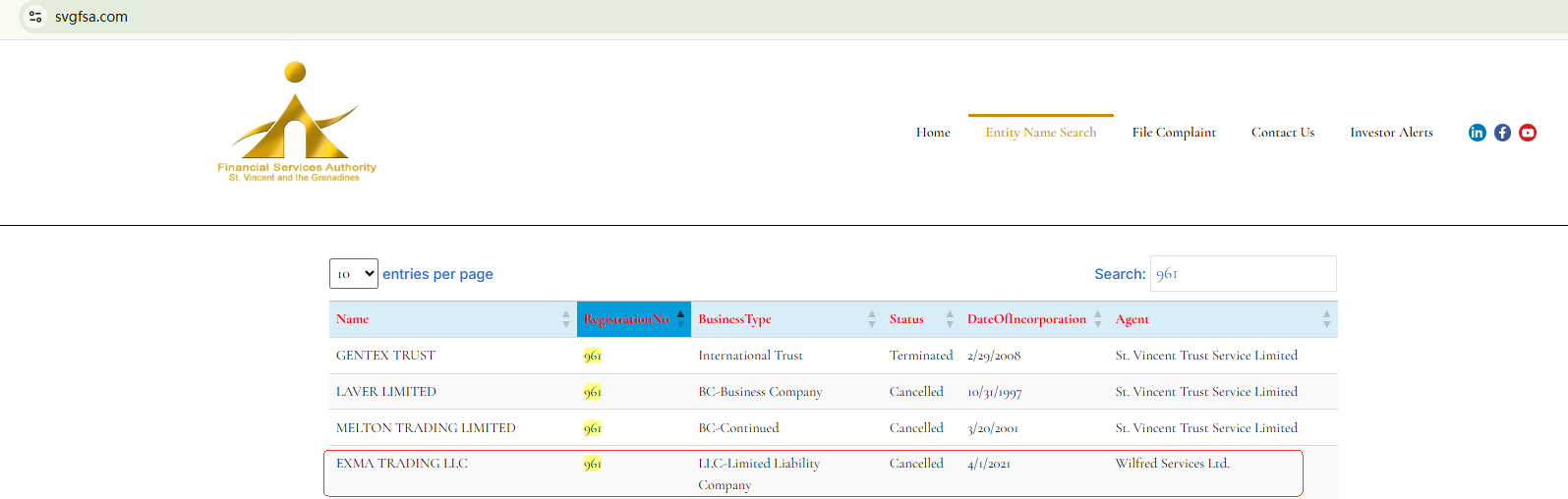 The website of EXMA TRADING is currently unavailable. The claimed registration number 961LLC2021 issued by the Financial Services Authority of St. Vincent and The Grenadines (SVG FSA) has been canceled. All these signs point to substantial risks associated with EXMA TRADING. Investors should be informed about the development and stay vigilant.
