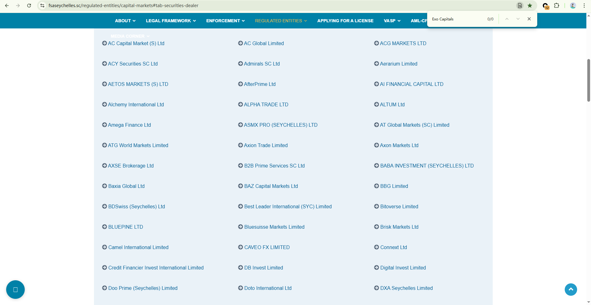Upon checking the official registers of each of these regulatory agencies, we found no record of Exo Capitals holding valid licenses from any of them. This indicates clear false claims and deliberate misleading of investors. In reality, Exo Capitals appears to be operating without legitimate regulatory oversight.