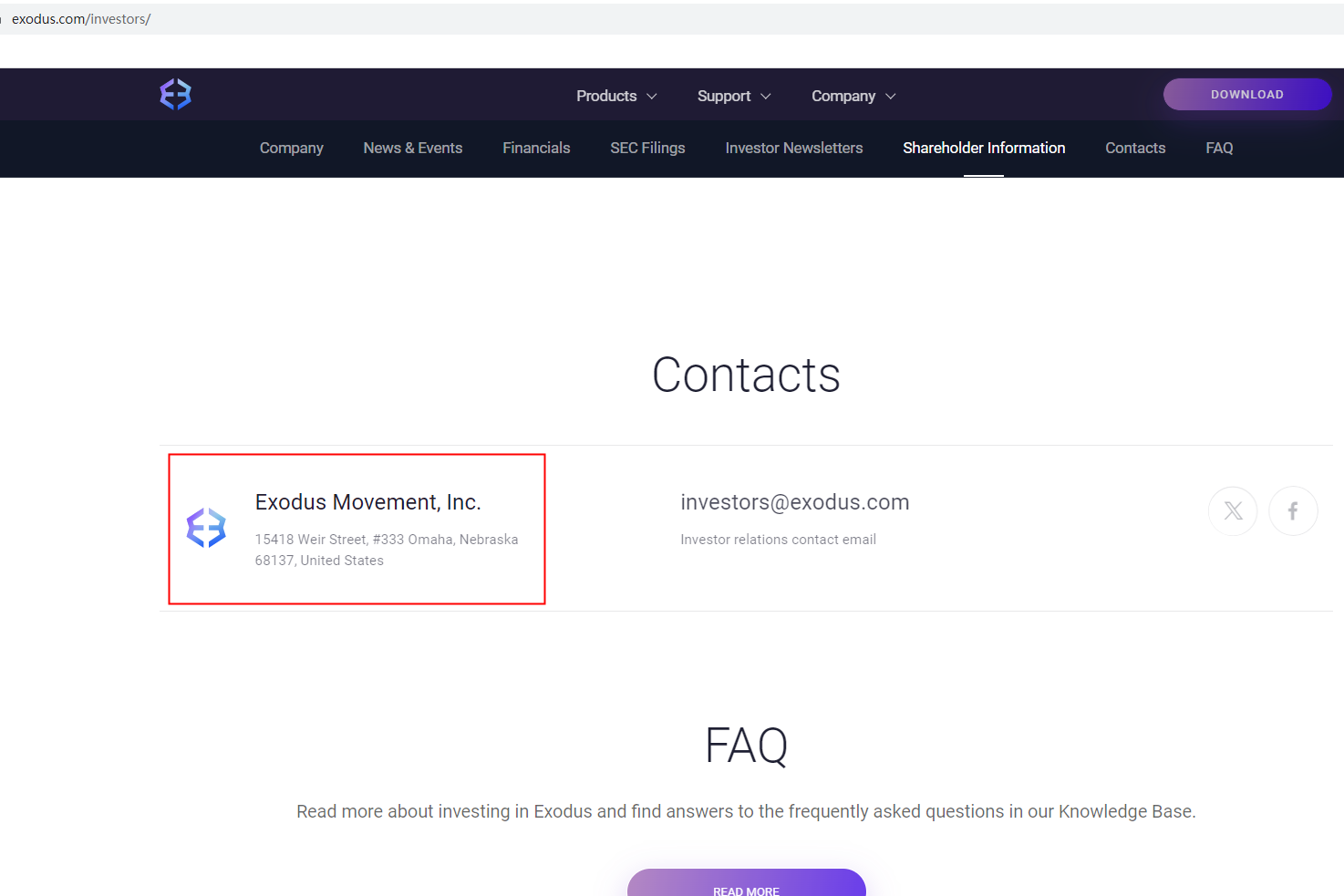 The truth is that Exodus Movement, Inc is not regulated by any regulators. Letting it hold or control investors' money is unsafe, and the money can not be protected by any laws.