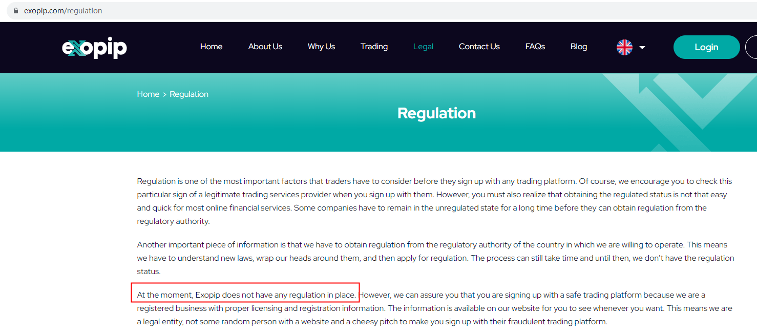 The truth is that Exopip is not regulated by any regulators. Letting it hold or control investors' money is unsafe, and the money can not be protected by any laws.