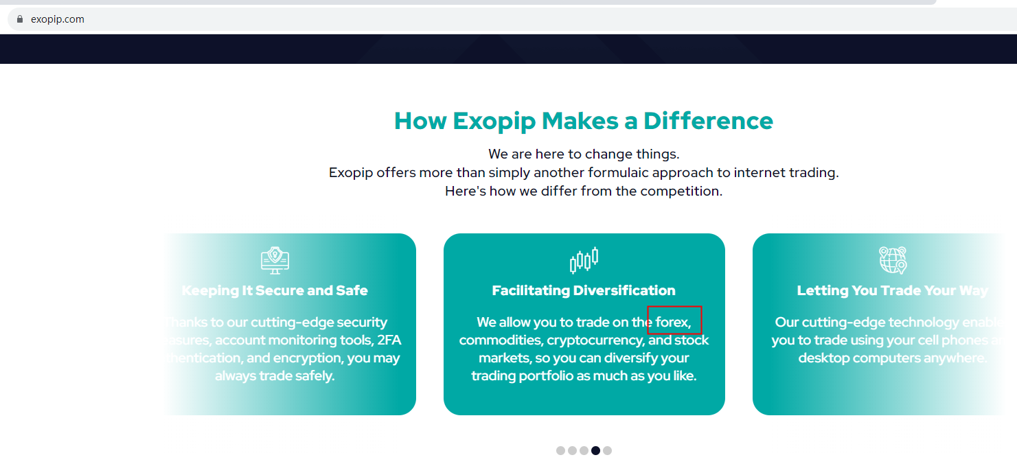 Exopip claims to be a reliable company without presenting any information about its regulation. The lack of such important information may be a distinct signal of an unlicensed broker, as regulated companies always present their accreditations and licenses in a prominent position. It is a red flag.