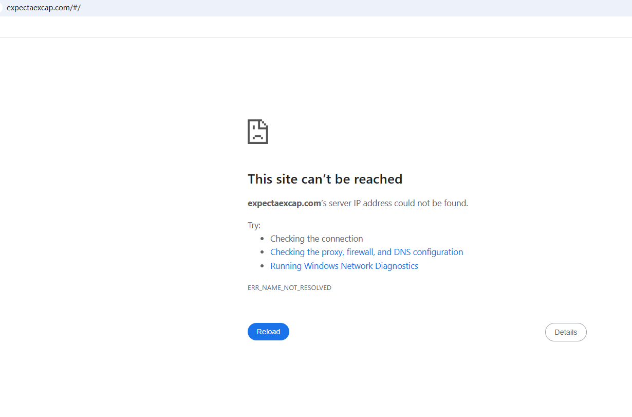 BrokersView found that the domain "https://expectaexcap.com/#/" is currently inaccessible. This is widely regarded as a significant red flag, as the suspension of a broker's website often points to underlying regulatory or operational issues.