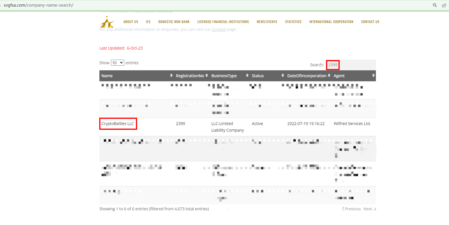While there is a company CryptoBattles LLC, under this number, in the SVG FSA register, no official data can substantiate their association. Furthermore, the SVG FSA explicitly states that it neither issues licenses for forex trading brokerage activities nor regulates entities involved in such activities.