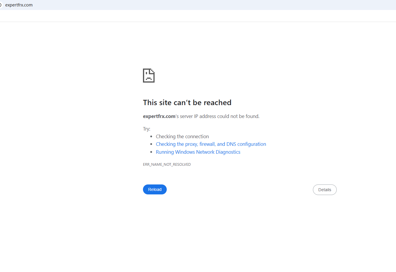 BrokersView found that the domain "https://expertfrx.com/" is currently inaccessible. This is widely regarded as a significant red flag, as the suspension of a broker's website often points to underlying regulatory or operational issues.