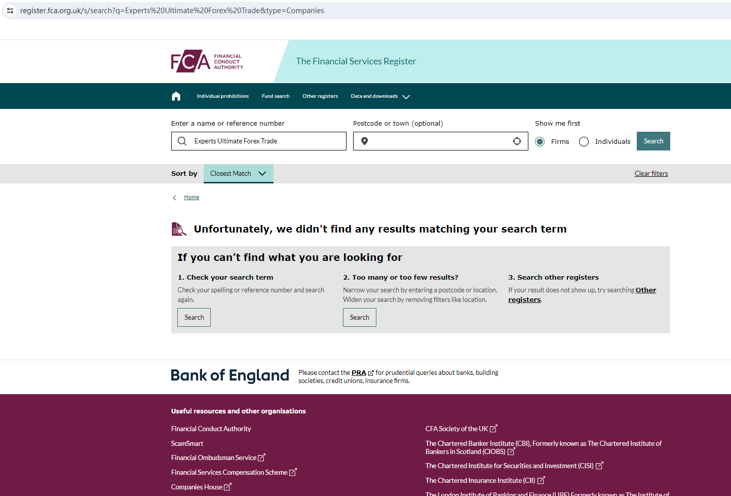 The truth is that Experts Ultimate Forex Trade is not under valid regulation by any regulators to do forex. Investors' funds in this broker are unsafe and cannot be protected by any law.