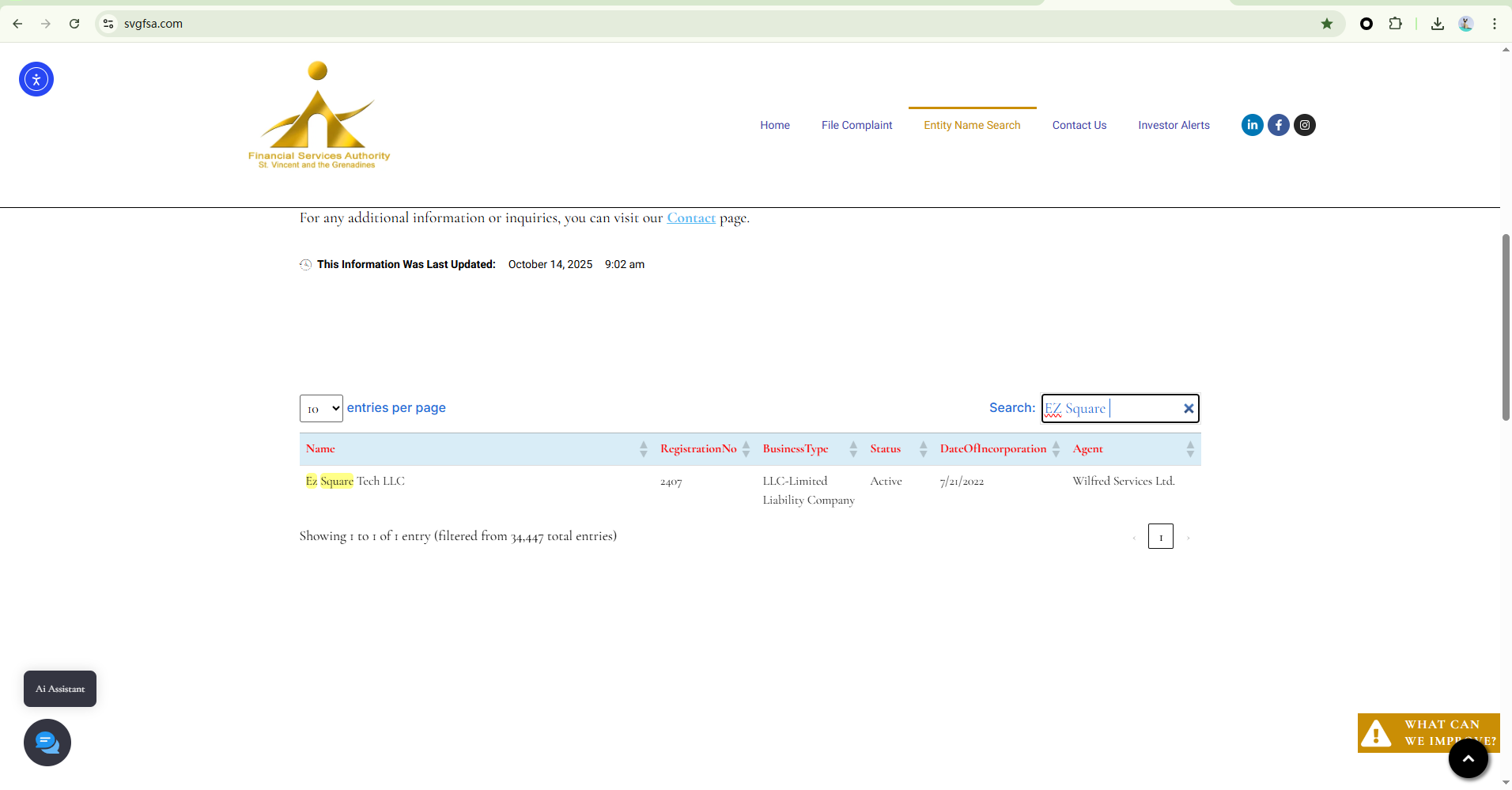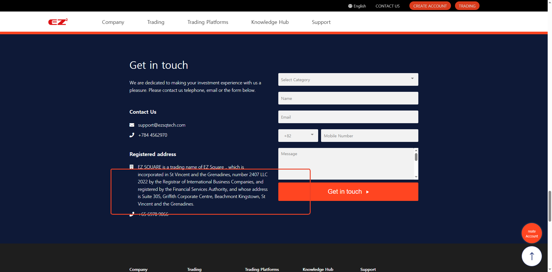EZ Square Tech merely claims to operate under Ez Square Tech LLC, which is registered with the Financial Services Authority (FSA) of Saint Vincent and the Grenadines. While we confirm that a matching company exists in the registry of SVG FSA, this only grants International Business Company (IBC) status. It does not constitute a valid financial license. The SVG FSA has clearly stated that it does not regulate or license forex brokers.