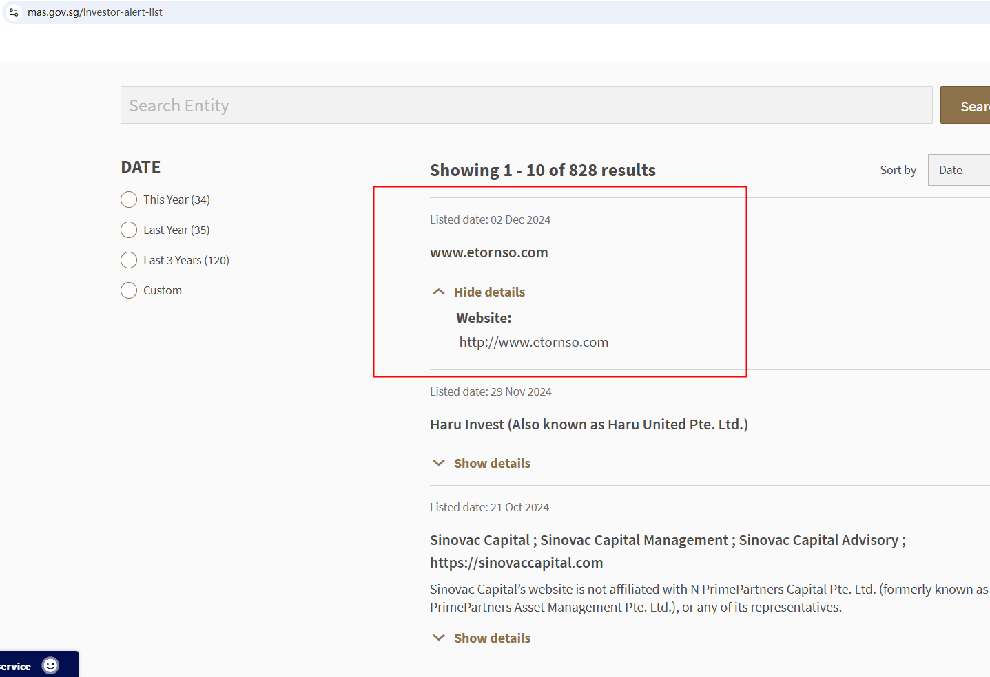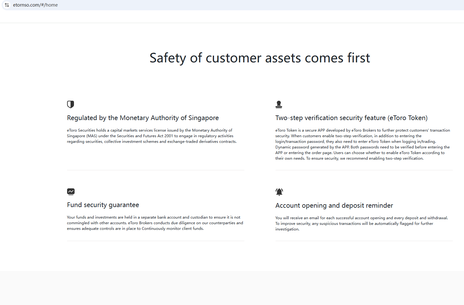 On 2 December 2024, the Monetary Authority of Singapore (MAS) issued a warning that Fake eToro was providing financial services or products without authorisation. You may visit: https://www.mas.gov.sg/investor-alert-list