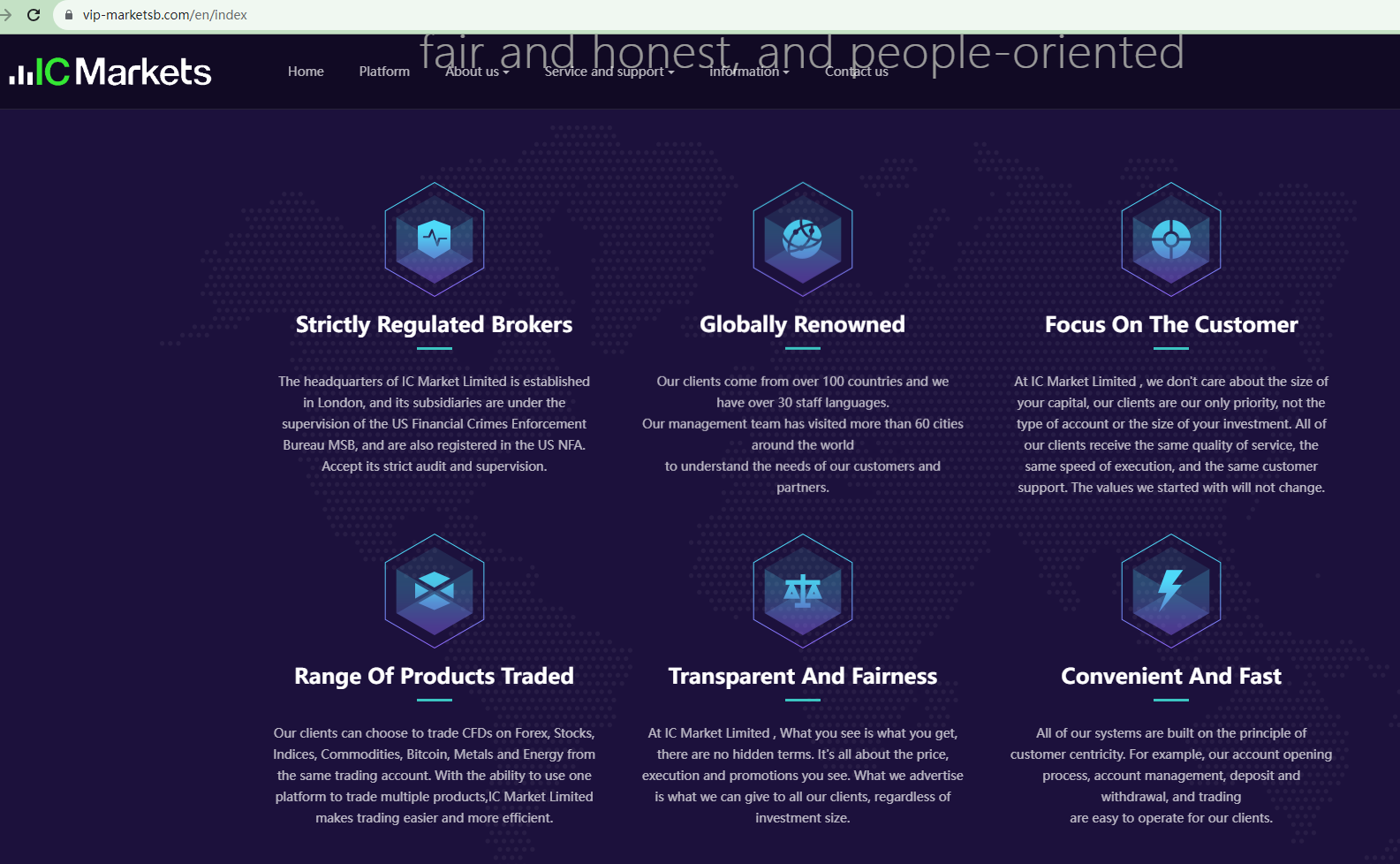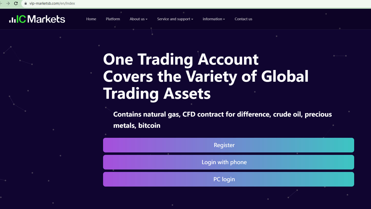 This is a fraudulent platform that uses a common template found among scammers for its website. It intentionally adopts a similar name and an identical logo to the real IC Markets to mislead unsuspecting investors and make it seem like it is operated by the genuine one.