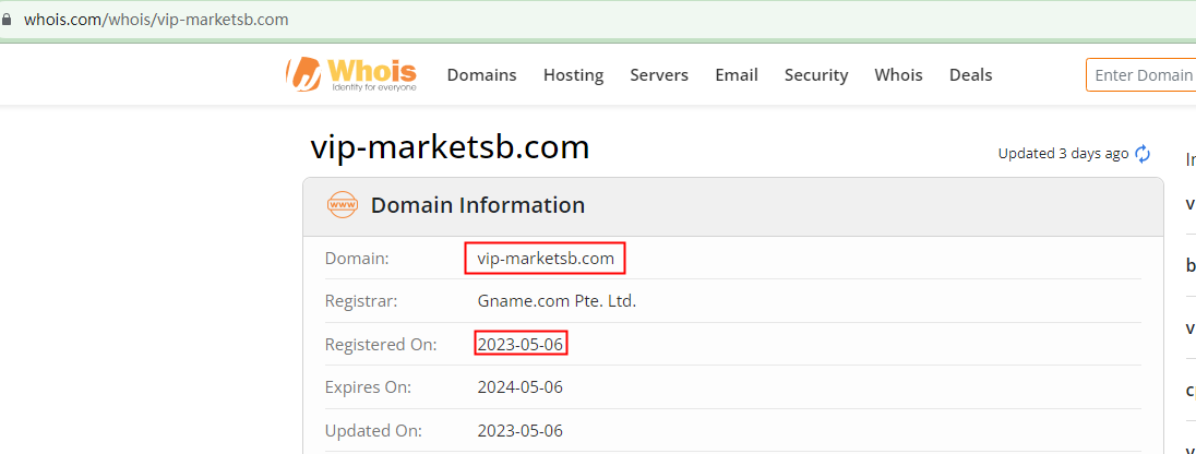 This platform refers to itself as "IC Market Limited" and its domain "vip-marketsb.com" was first registered in May 2023. The website's recent creation date, along with its poorly desgined website, suggests that the owner created it in a rush with the goal of defrauding investors.