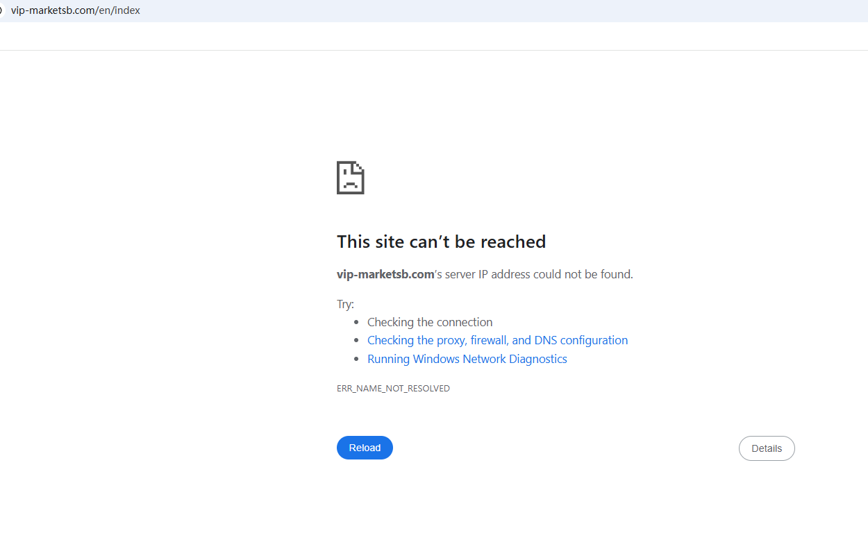 BrokersView found that the domain "https://vip-marketsb.com/en/index" is currently inaccessible. This is widely regarded as a significant red flag, as the suspension of a broker's website often points to underlying regulatory or operational issues.