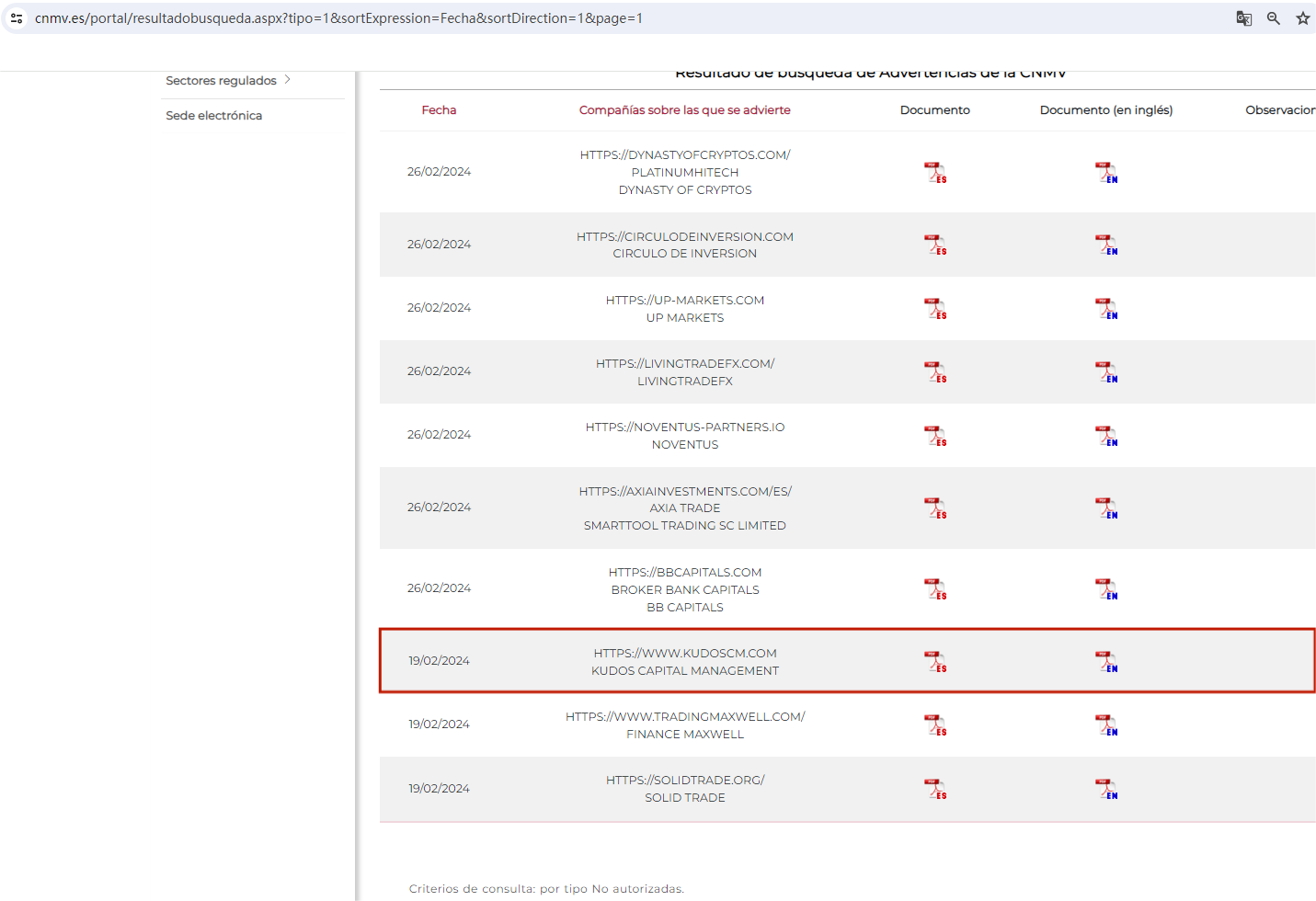 On February 19, 2024, the Comisión Nacional del Mercado de Valores (CNMV) added Fake KUDOS CAPITAL MANAGEMENT to its warning list for providing investment services without authorization. https://www.cnmv.es/portal/resultadobusqueda.aspx?tipo=1&sortExpression=Fecha&sortDirection=1&page=1