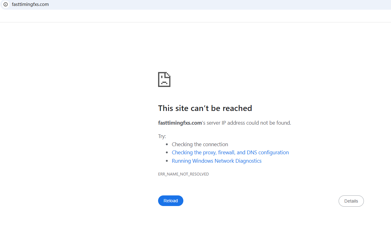 BrokersView found that the domains "https://www.fasttimingfx.com/; https://fasttimingfxs.com/" are currently inaccessible. This is widely regarded as a significant red flag, as the suspension of a broker's website often points to underlying regulatory or operational issues.
