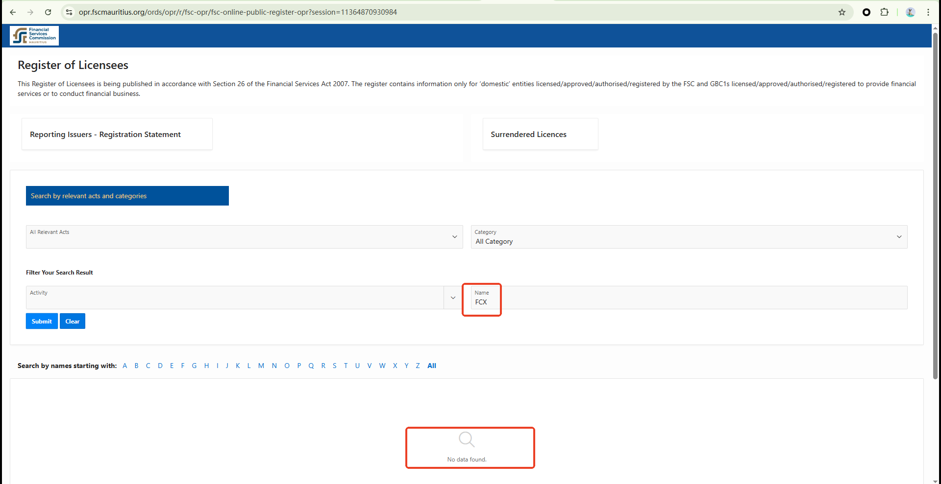 FCX Trade also claims to be licensed by the Financial Services Commission (FSC). However, upon investigation, no matching company name was found on the FSC's official website. The Financial Crimes Enforcement Network (FinCEN) in the USA, which it also claims to be regulated by, does not regulate CFD trading either.