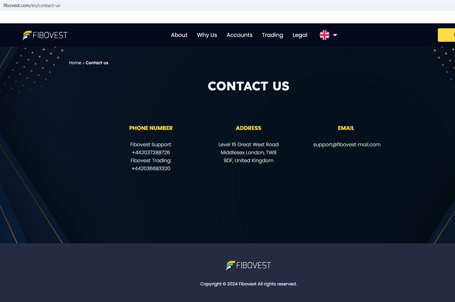 According to its website, it is located in the UK. Upon investigation, no matching information was found in the Financial Conduct Authority (FCA). In addition, the British Columbia Securities Commission (BCSC) issued a warning that Fibovest was providing financial services or products without authorisation.