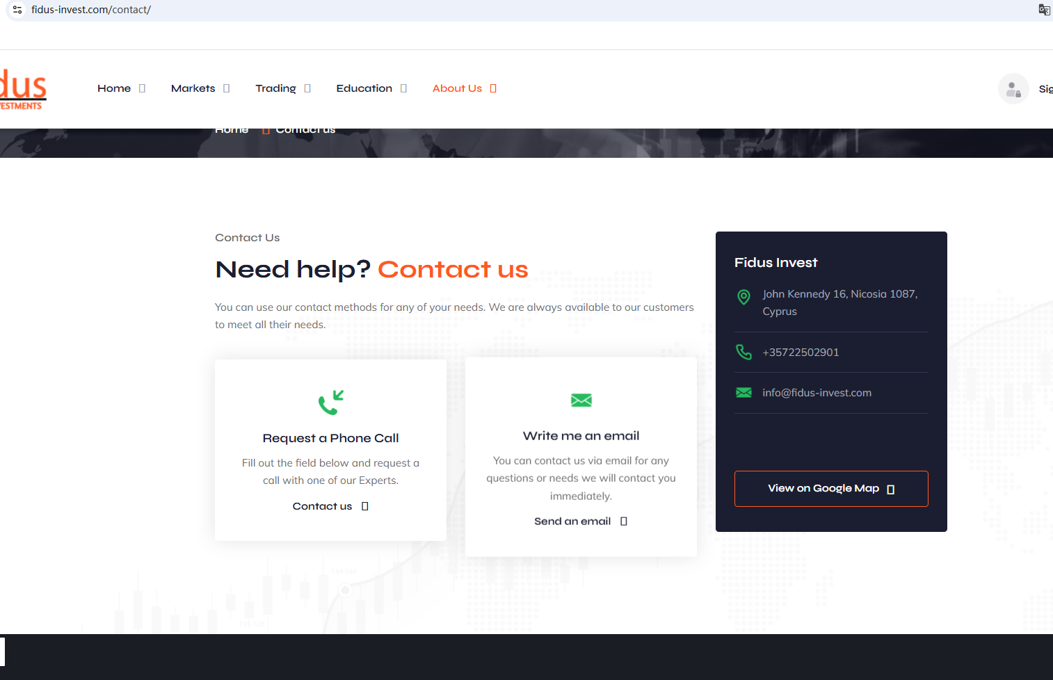 According to its website, it is located in Cyprus. Upon investigation, no matching information was found in the Cyprus Securities and Exchange Commission (CySEC). It is worth noting that although there is a company with a similar name on file, according to CySEC’s information, this platform is clearly not related to the company on file, and we have not found any information that would indicate a direct relationship between the two.