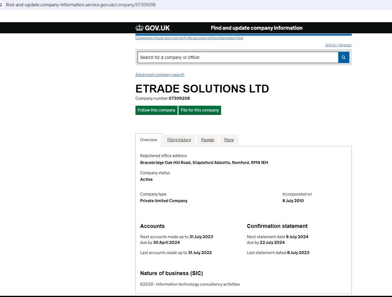 According to its website, it claims that it is regulated by the Financial Conduct Authority (FCA), upon investigation, no matching information was found in the FCA. In addition, it displayed a registration certificate of Company House (CH) on the web page, and upon inquiry, it was found that the company name and address were different. This certificate has no validity.