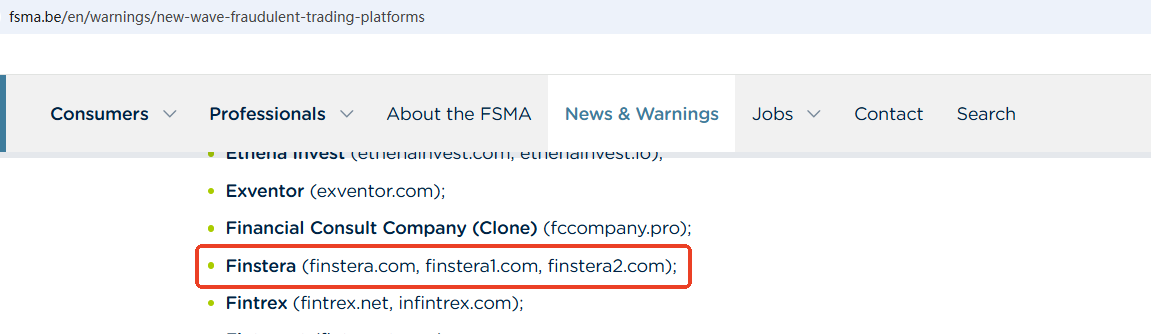 On July 24, 2025, the Financial Services and Markets Authority (FSMA) issued a warning about Finstera for the lack of the required authorization. https://www.fsma.be/en/warnings/new-wave-fraudulent-trading-platforms