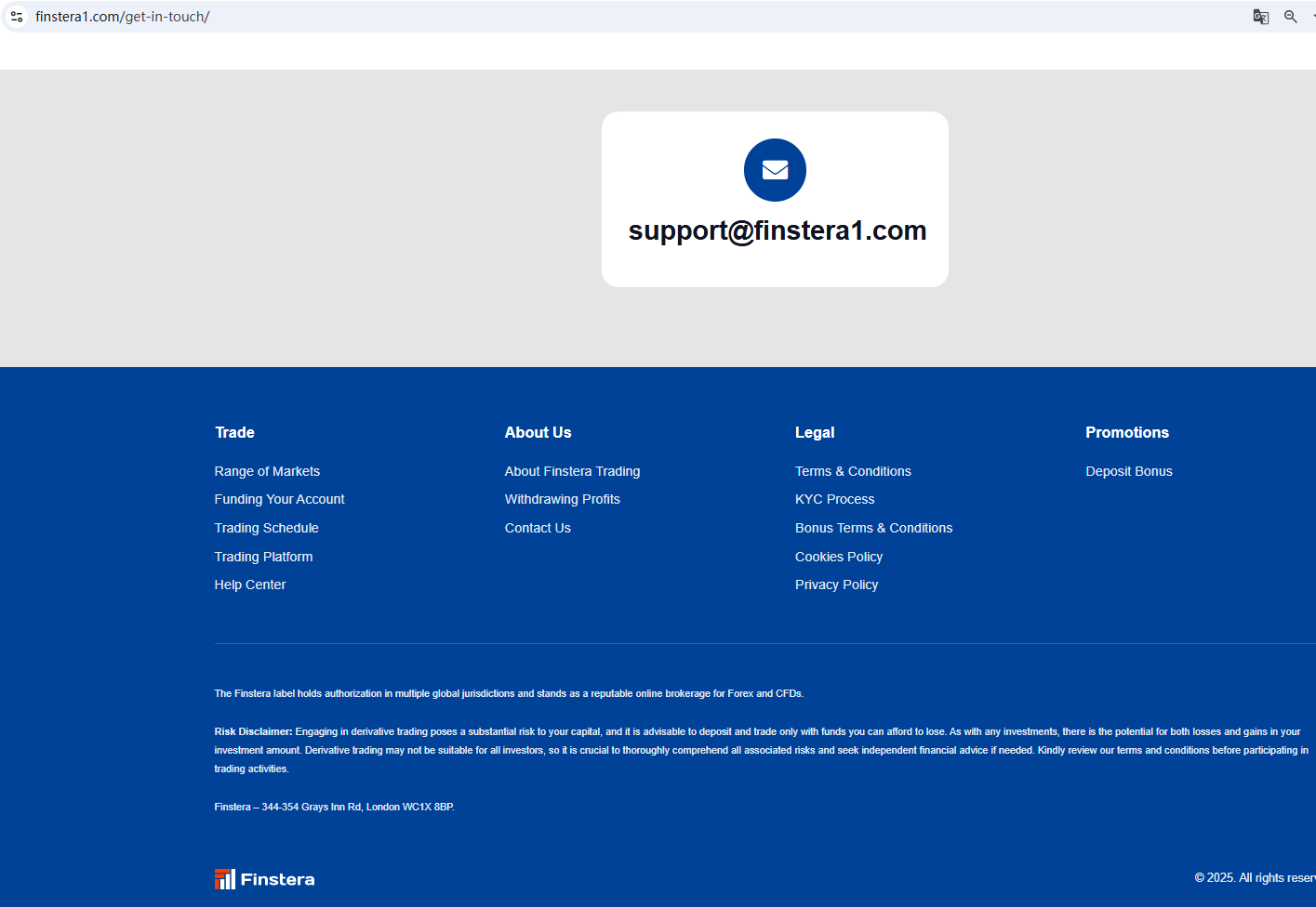 According to its website, it claims to be based in the UK. Ironically, we found out that the Financial Conduct Authority (FCA) issued a warning about Finstera, and the Financial Services and Markets Authority (FSMA) has also issued a warning about Finstera for the lack of required authorization.