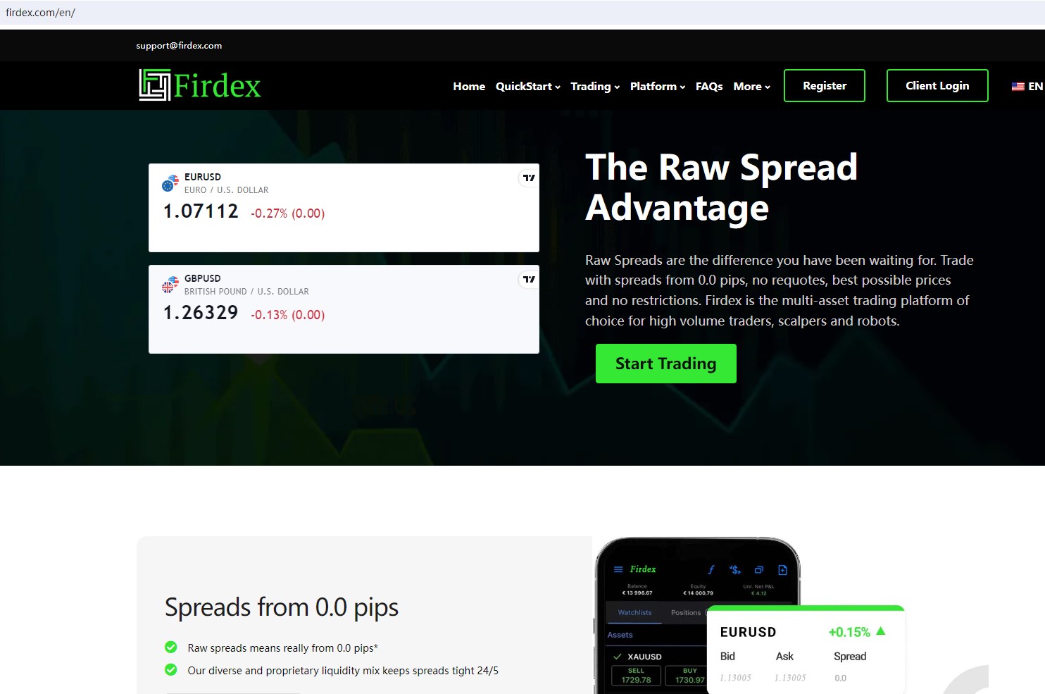 Firdex claims to be a forex CFD provider located in Canada, offering wide range of financial services, including Forex, Futures, Bond, Commodities, Digital Currencies, Indices and more instruments in global markets. However, there is no detailed financial services licenses and other licensing certificates. A company that offers financial services must have financial license in the country where it is located.