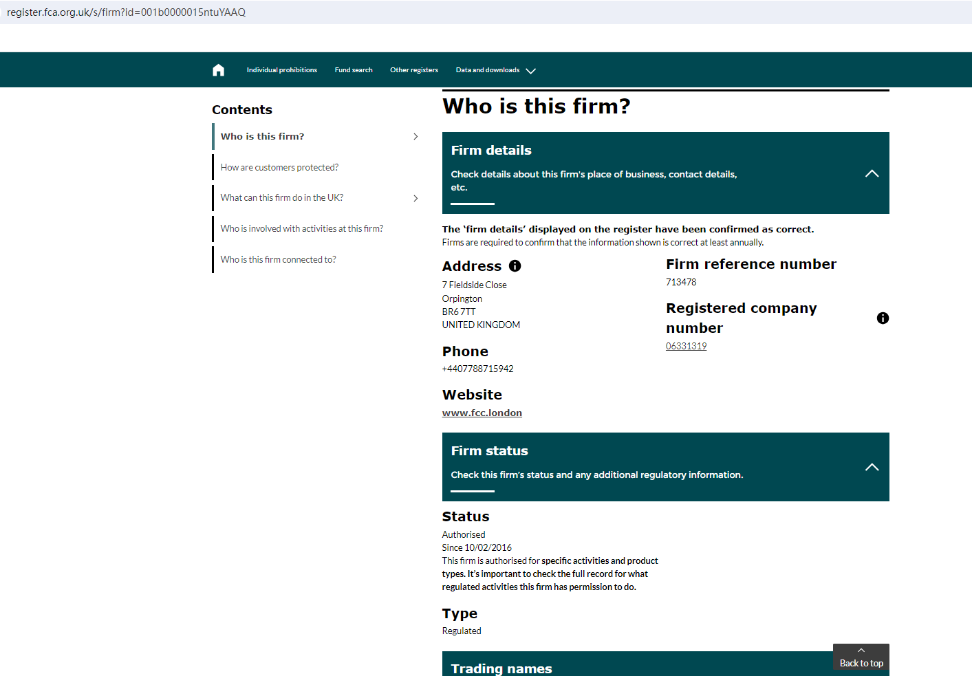 In addition, it claims to be regulated by the Financial Conduct Authority (FCA). We found a company with the same name as First Capital on the FCA, but a careful comparison found that the URL of the company regulated by the FCA is inconsistent with the URL of First Capital. It is obvious that the regulatory information of the compliance company has been stolen.