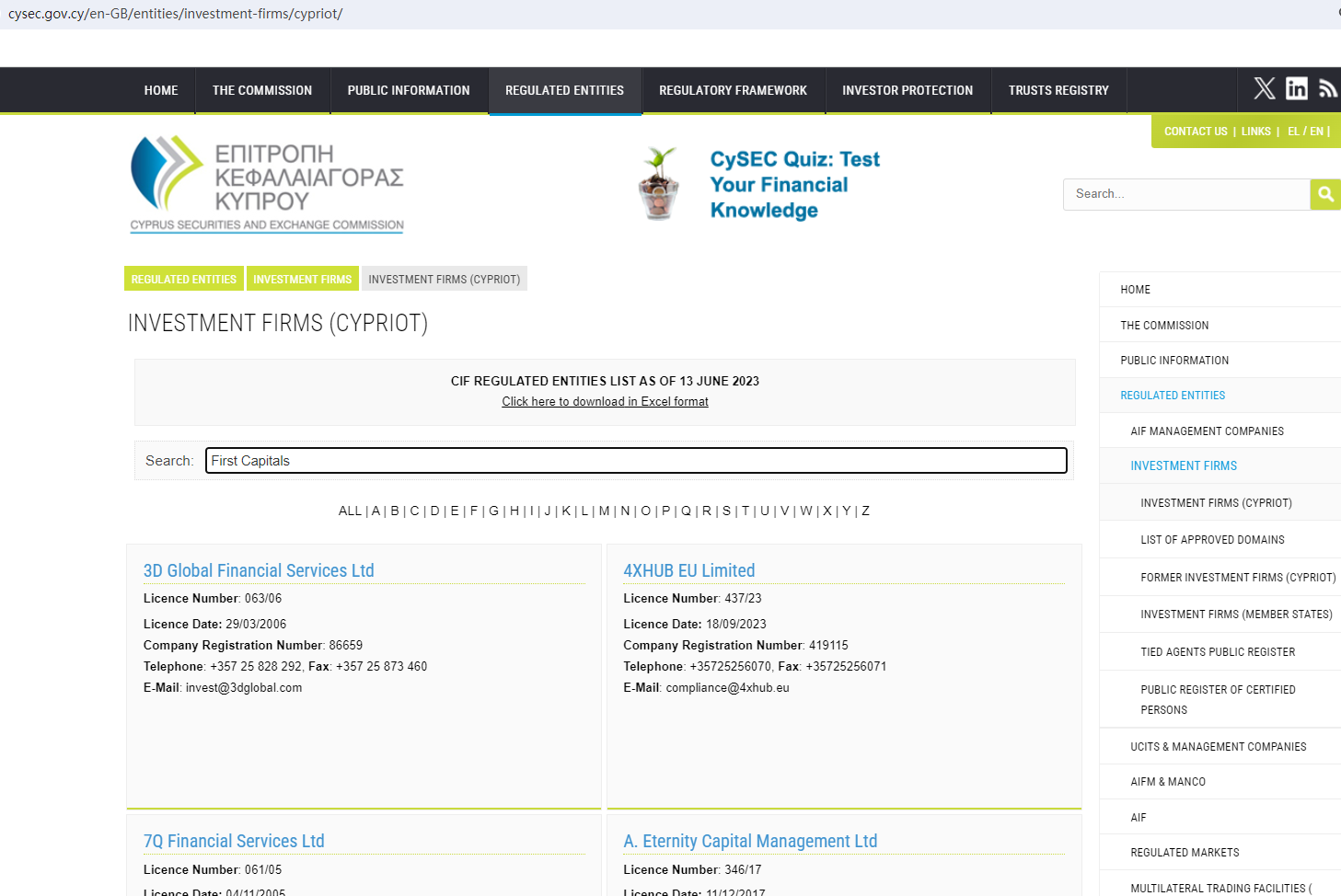 The truth is, First Capitals is not regulated by any regulators. Letting this broker hold or control investors' money is unsafe, and the money can not be protected by any laws.