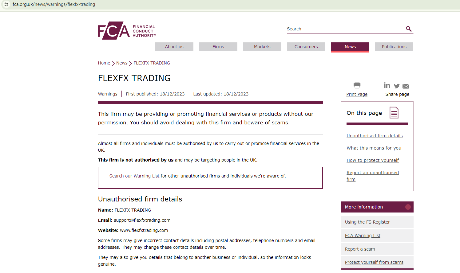 On December 18, 2023, the Financial Conduct Authority (FCA) issued a warning against FLEXFX TRADING, believing this broker might be providing financial services or products without proper authorization in the UK. https://www.fca.org.uk/news/warnings/flexfx-trading
