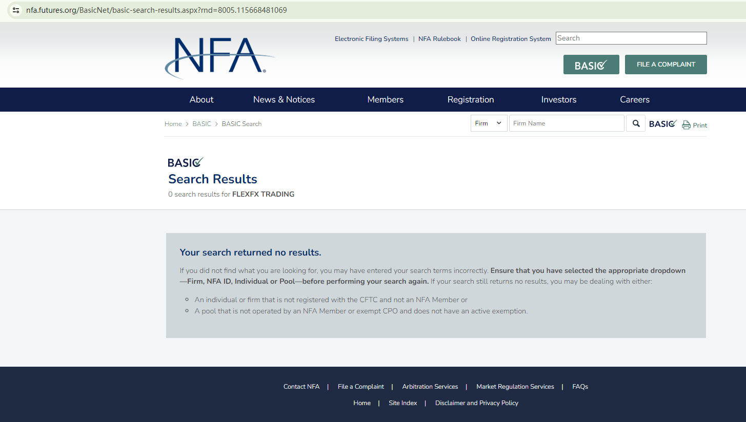 In essence, FLEXFX TRADING is not regulated by any governing body, making it highly risky for investors to entrust their funds to this broker. There are no legal protections in place to safeguard the funds.