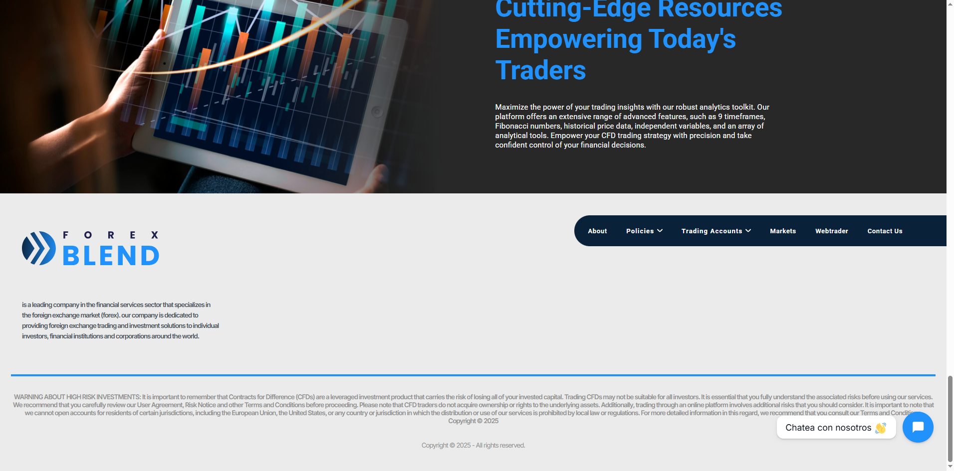 Forex Blend appears to be an unregulated trading platform. Its website does not disclose any regulatory information, and we are even unable to identify its registered address or the jurisdiction under which it operates. This lack of transparency strongly suggests an intentional effort to avoid regulatory oversight. Given these red flags, we believe that Forex Blend appears to be a scam.