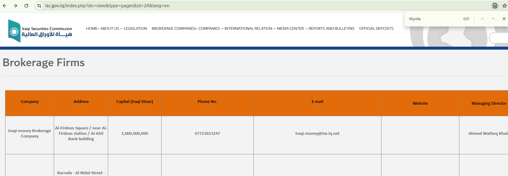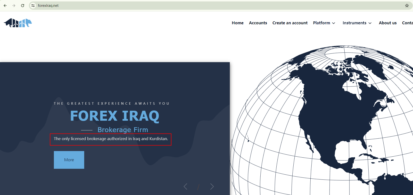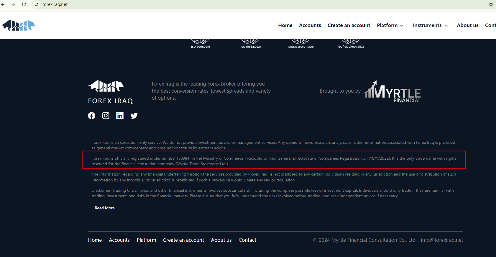 Forex Iraq boasts that it is the only licensed broker in Iraq, operated by Myrtle Trade Brokerage Ltd., a company registered with Ministry of Commerce.