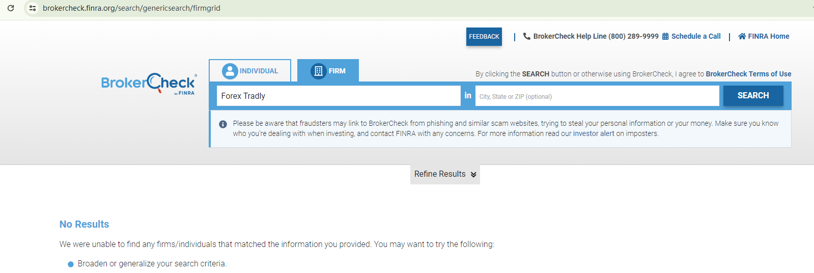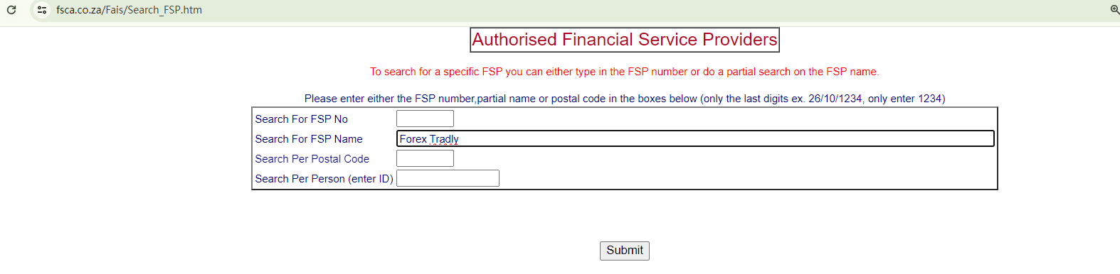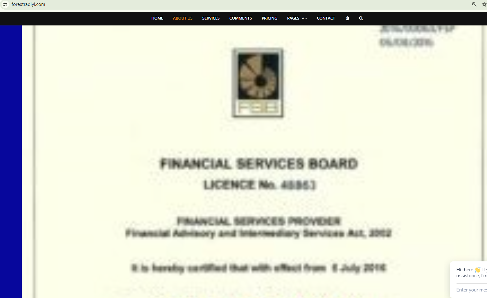 Forex Tradly LTD purports to hold licenses from the Financial Industry Regulatory Authority (FINRA) and the Financial Services Board (FSB), providing two blurred images. However, the text on these alleged licenses is difficult to decipher, casting doubt on their authenticity. It's important to note that the FSB is based in South Africa, and firms offering financial services there should be licensed by the Financial Sector Conduct Authority (FSCA). Despite conducting a thorough search in the registers of both the FINRA and the FSCA, we found no records to substantiate the claims made by Forex Tradly LTD.