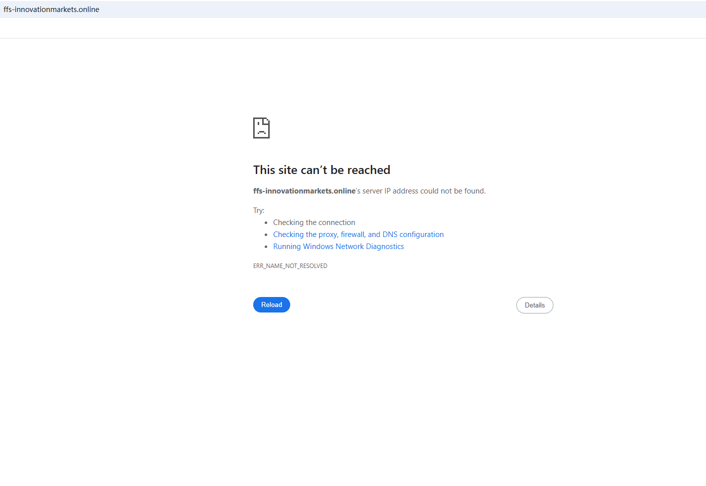 BrokersView found that the domain "ffs-innovationmarkets.online" is currently inaccessible. This is widely regarded as a significant red flag, as the suspension of a broker's website often points to underlying regulatory or operational issues.