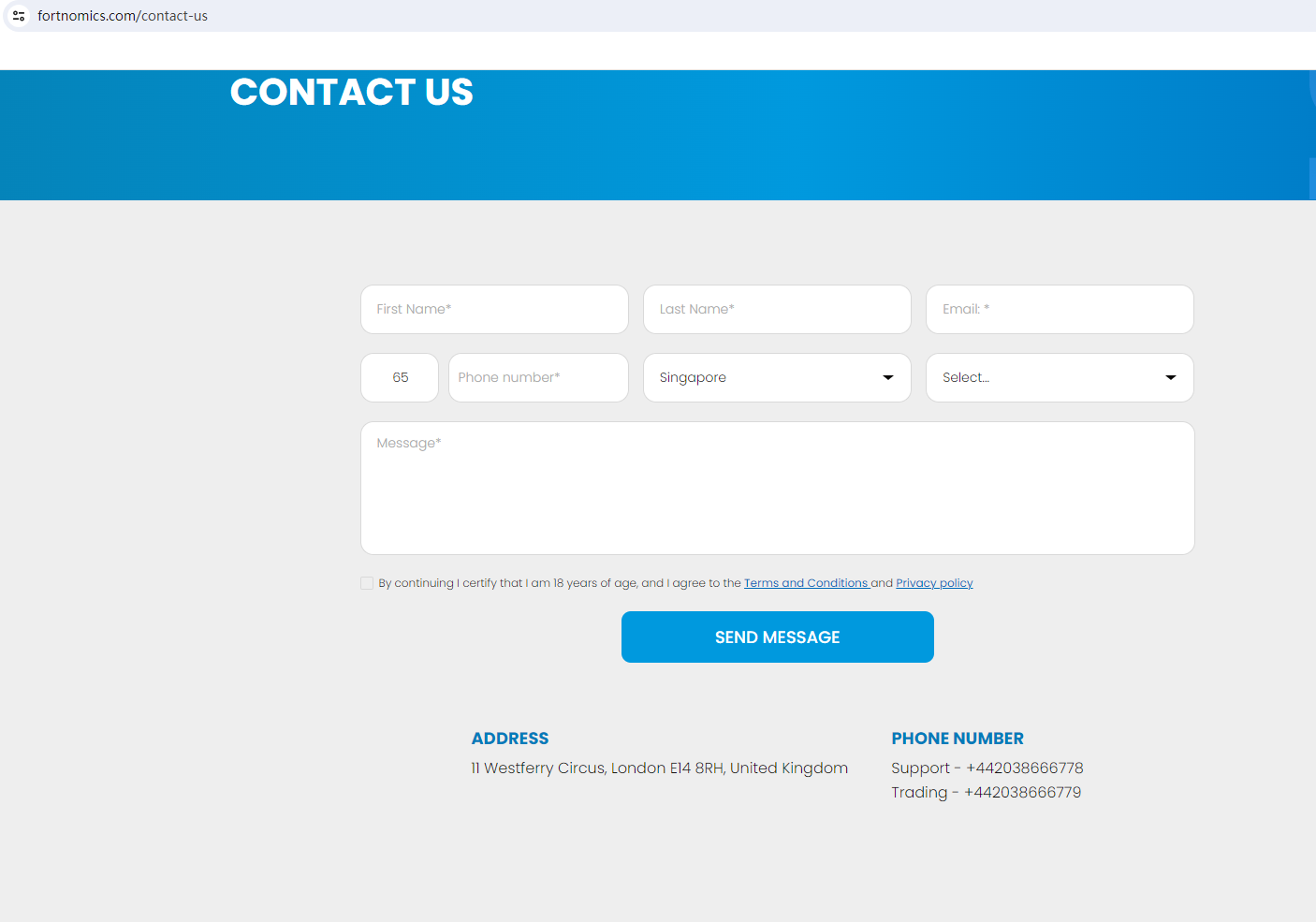 In essence, Fortnomics is not regulated by any governing body. Entrusting this broker with investors' funds is highly risky, as there are no legal protections in place to safeguard the funds.