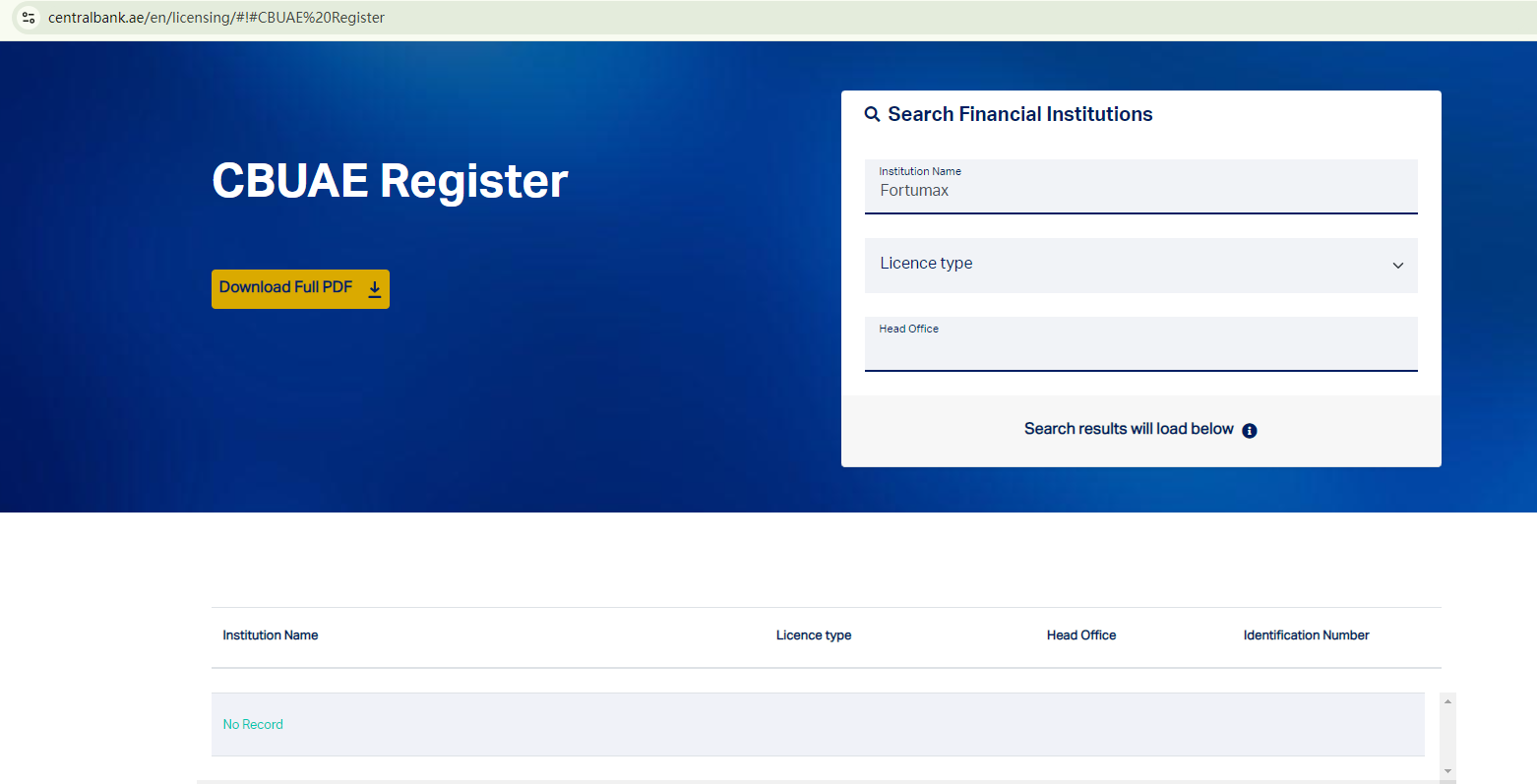 While Fortumax Prudent FX claims to be located in Dubai, there are no records from relevant financial authorities to suggest it is legally authorized.