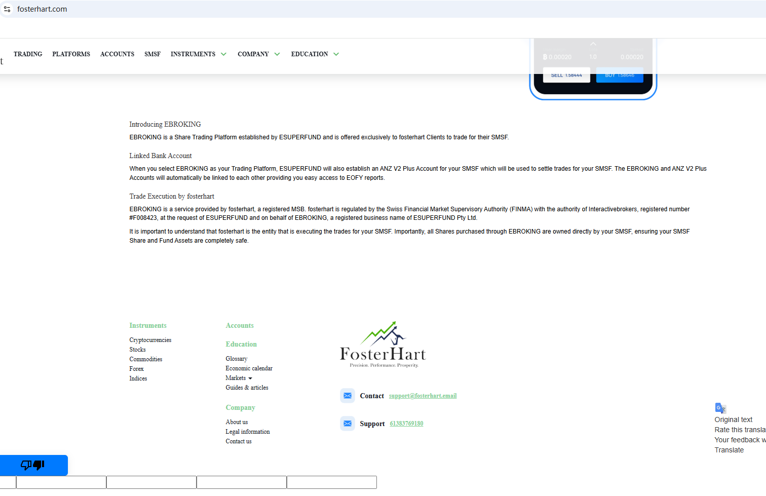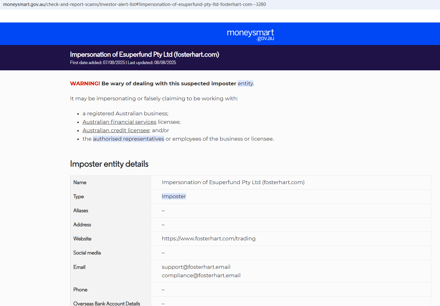 According to its website, it claims to be regulated by the Swiss Financial Market Supervisory Authority (FINMA). Upon investigation, no matching information was found in FINMA. In addition, the Australian Securities & Investments Commission (ASIC) issued a warning against Fosterhart, believing this company might be providing financial services or products without proper authorization.