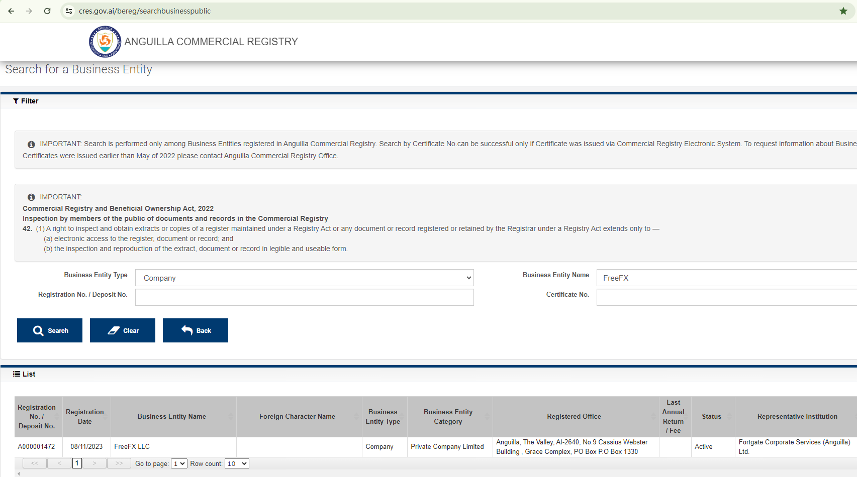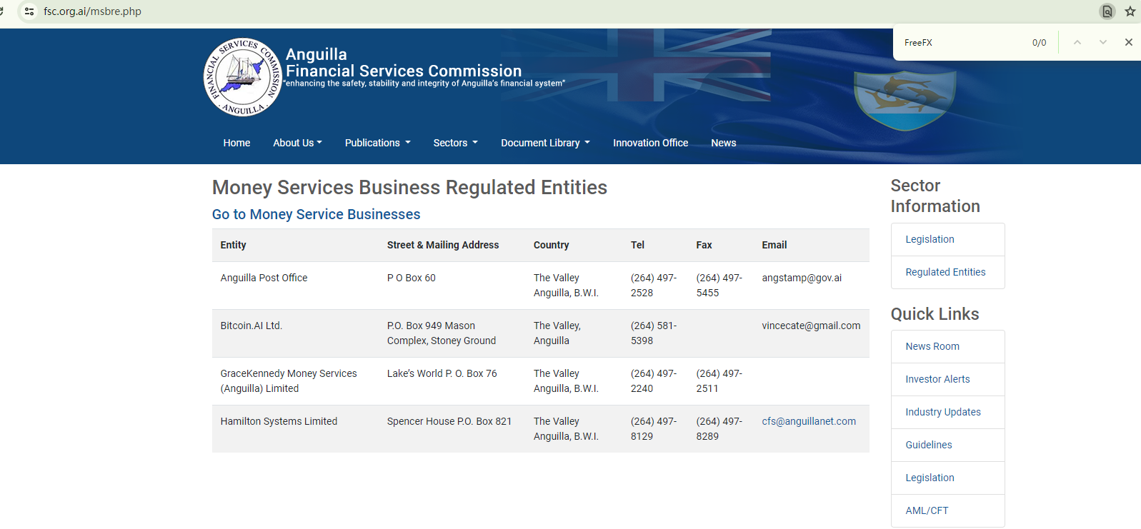 Free Forex purports to be managed by FreeFx LLC, a company that is allegedly registered in Anguilla under the Registration Number A000001472. Records from the Anguilla Commercial Registry do indeed match this information.