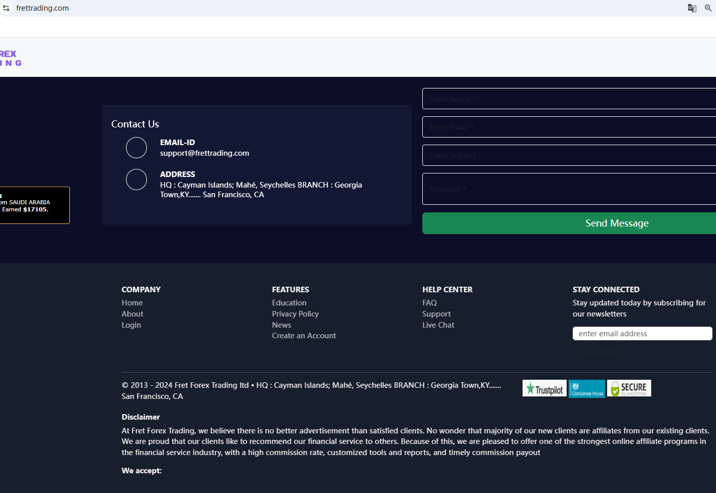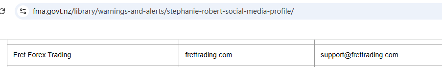 On May 5, 2025, the New Zealand Financial Markets Authority (NZ FMA) added Fret Forex Tradingto its warning list, stating that this is a fake investment platform. https://www.fma.govt.nz/library/warnings-and-alerts/stephanie-robert-social-media-profile/