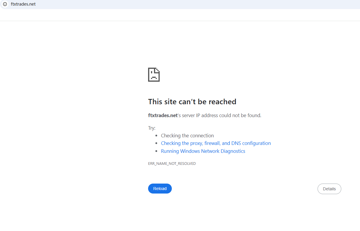 BrokersView found that the domain "https://ftxtrades.net/" is currently inaccessible. This is widely regarded as a significant red flag, as the suspension of a broker's website often points to underlying regulatory or operational issues.