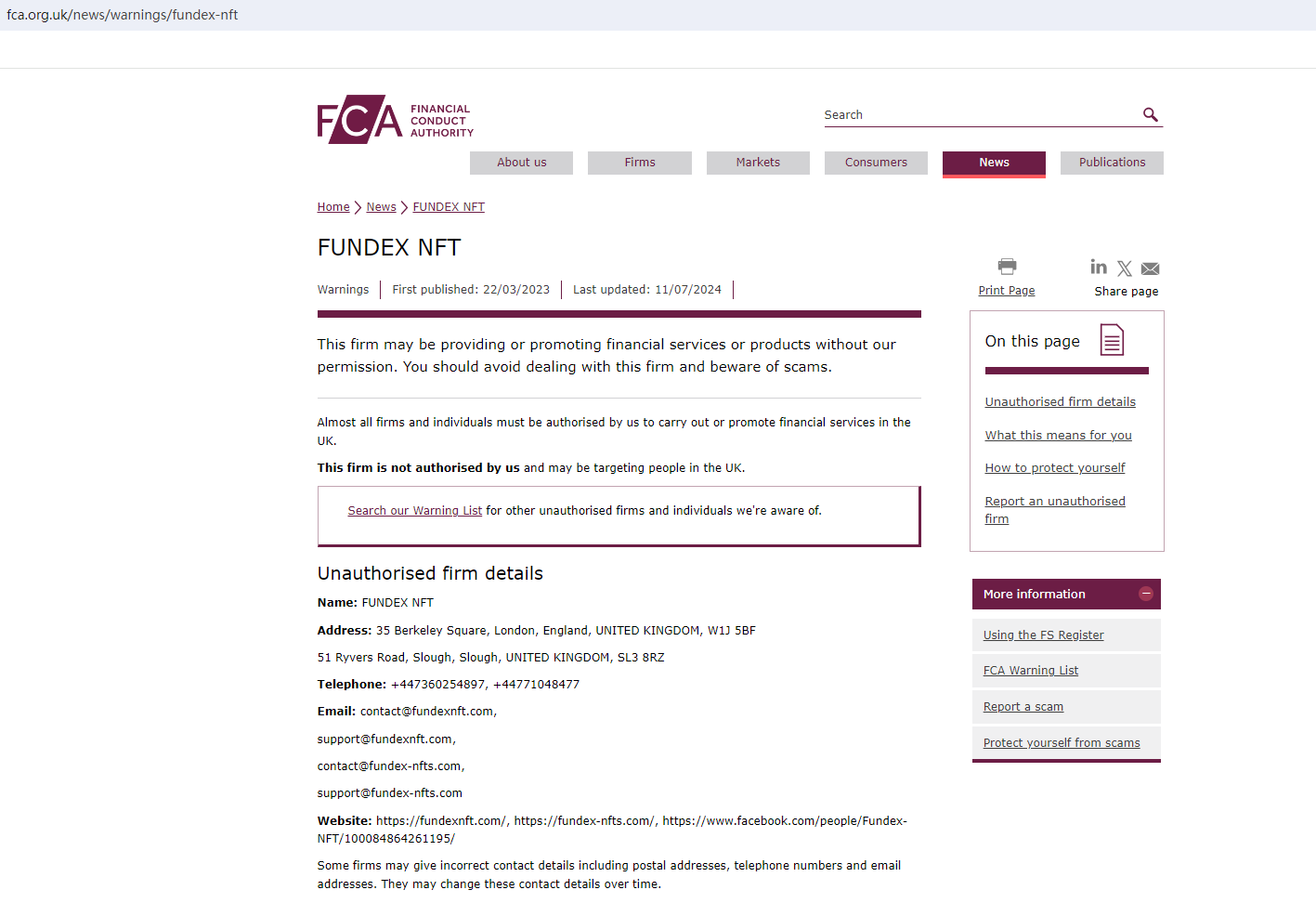 FUNDEX NFT is still in business, continuing its fraudulent activities to steal money. Therefore, the FCA updates its warning against FUNDEX NFT, cautioning the public to stay away from this unauthorized firm. https://www.fca.org.uk/news/warnings/fundex-nft