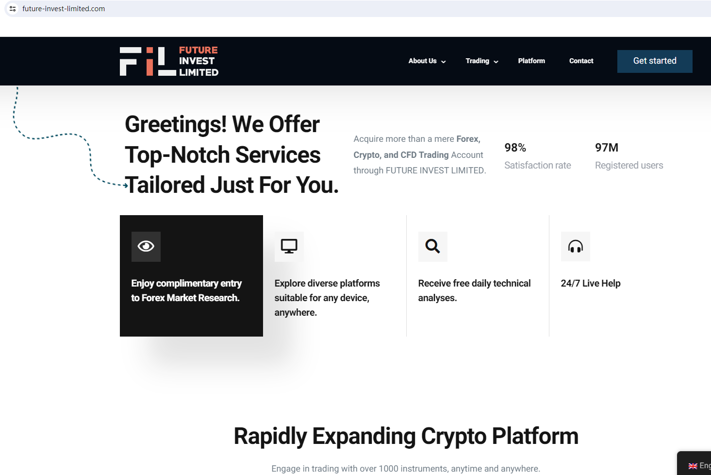 BrokersView found that the domain "https://future-invest-limited.com/" is currently inaccessible. This is widely regarded as a significant red flag, as the suspension of a broker's website often points to underlying regulatory or operational issues.