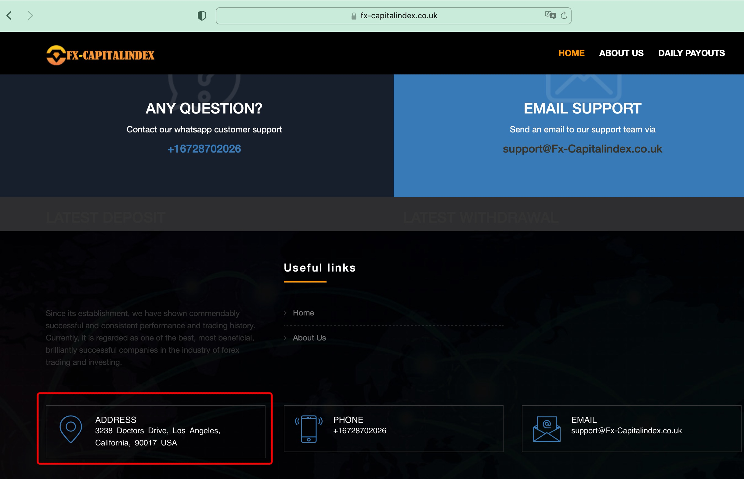 Fx Capitalindex claims to be a reliable company without presenting any information about its regulation.