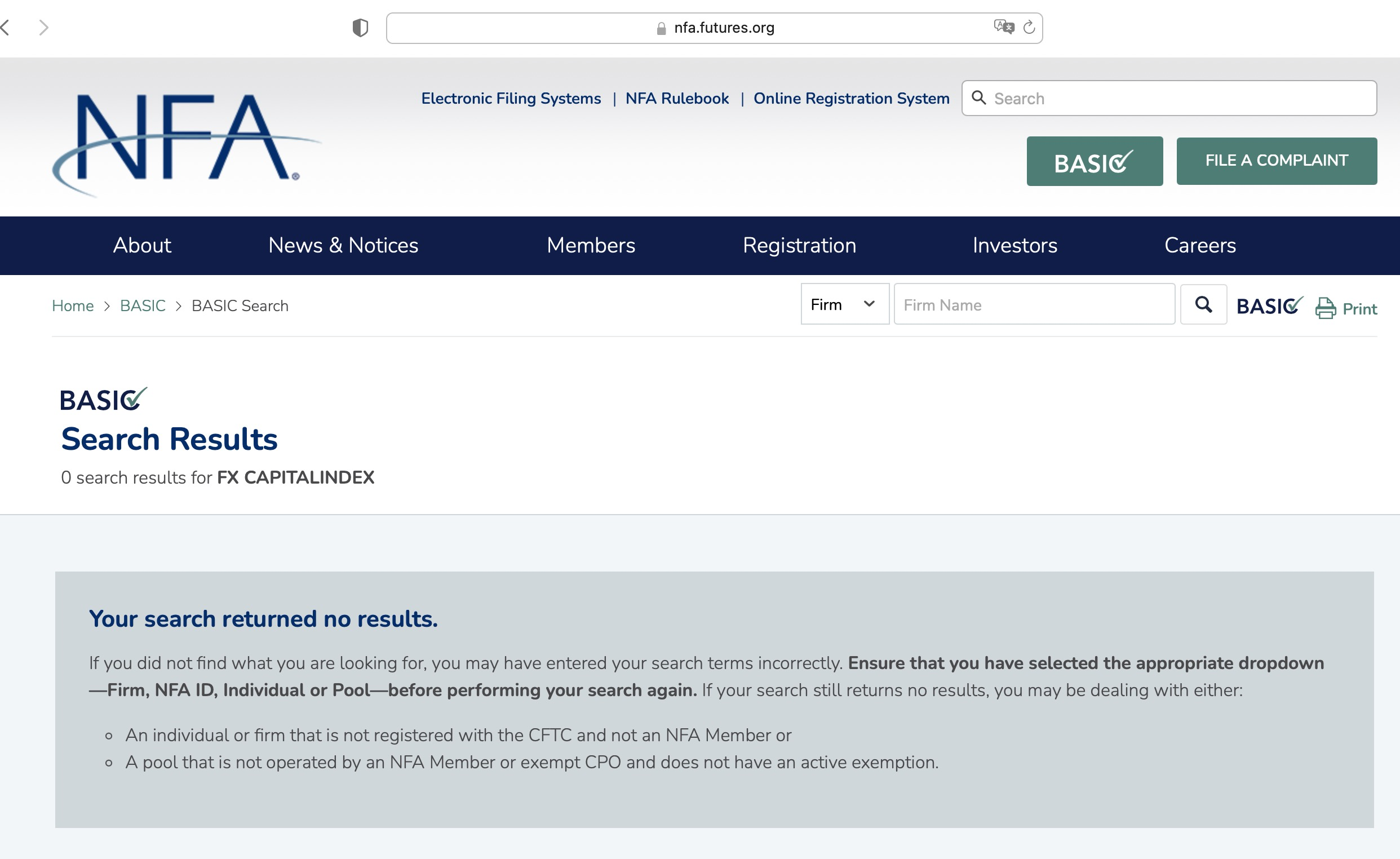 Fx Capitalindex locates in the United States, we searched the National Futures Association (NFA) but found no matching results.