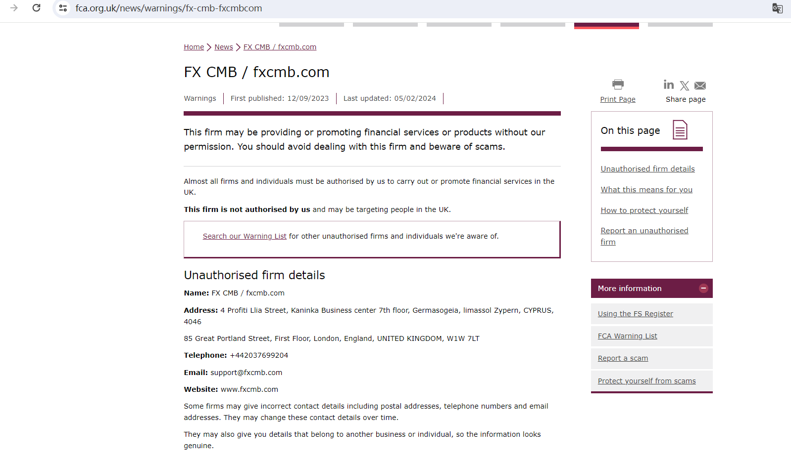 On February 5, 2025, the Financial Conduct Authority (FCA) updated its warning about FX CMB, disclosing more details concerning this scam. https://www.fca.org.uk/news/warnings/fx-cmb-fxcmbcom