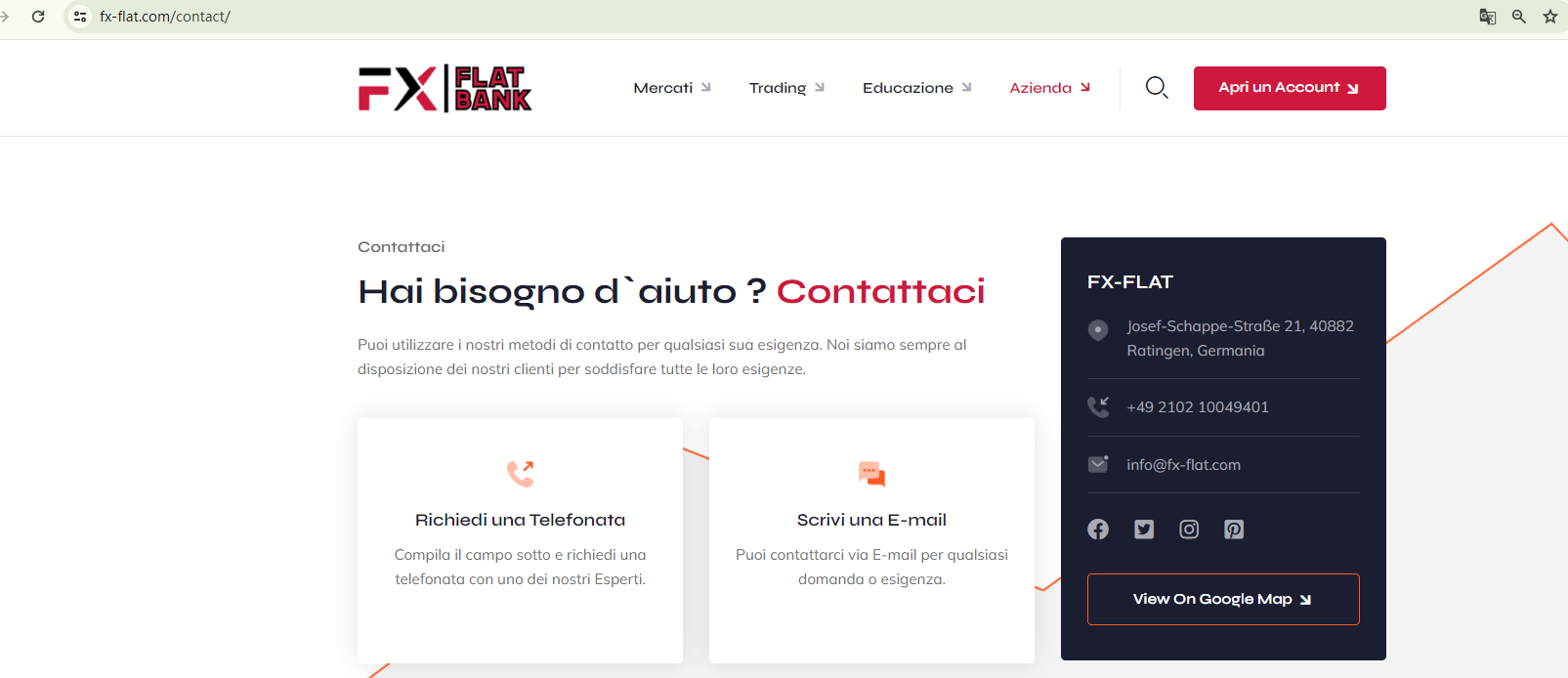 According to the BaFin, the operator claims to be based in Ratingen, Germany, and uses the website, which is available only in Italian, to try to convince consumers to open a trading account. The website lists the former headquarters (Josef-Schappe-Straße 21, Ratingen) and telephone number of FXFlat Bank GmbH, a licensed entity by BaFin. In fact, the website falsely claims to be licensed by BaFin and has nothing to do with FXFlat Bank GmbH. This is a case of identity theft against FXFlat Bank GmbH.