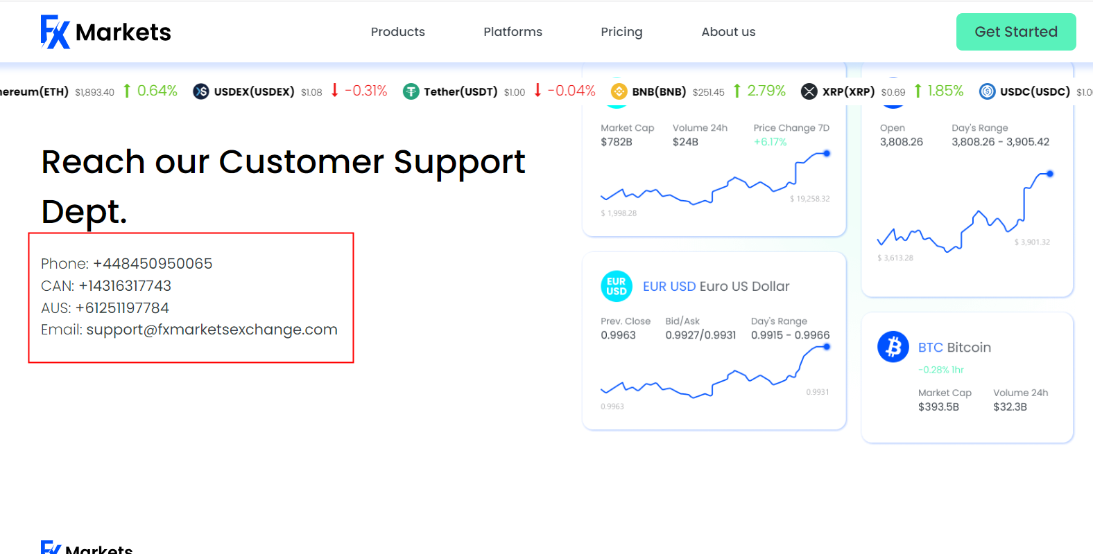 According to its website, FX Markets Xchange does not display any regulatory information and address on the website for people to check. According to the phone number provided on the website, we found the corresponding country and conducted regulatory inquiries. The inquiry found that there is no matching information was found in the Financial Conduct Authority (FCA), Australian Securities & Investment Commission (ASIC), Investment Industry Regulatory Organization of Canada (IIROC).