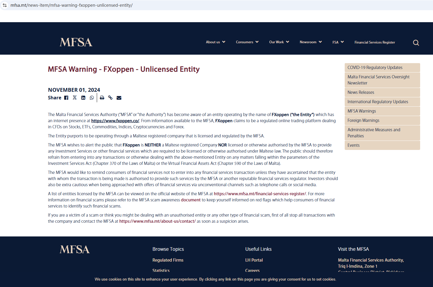 On 1 November, 2024, the Malta Financial Services Authority (MFSA) issued a warning against FX Oppen, stating this broker is neither a Maltese registered company nor licensed or otherwise authorised by the MFSA to provide any investment services or other financial services which are required to be licensed or otherwise authorised under Maltese law. https://www.mfsa.mt/news-item/mfsa-warning-fxoppen-unlicensed-entity/