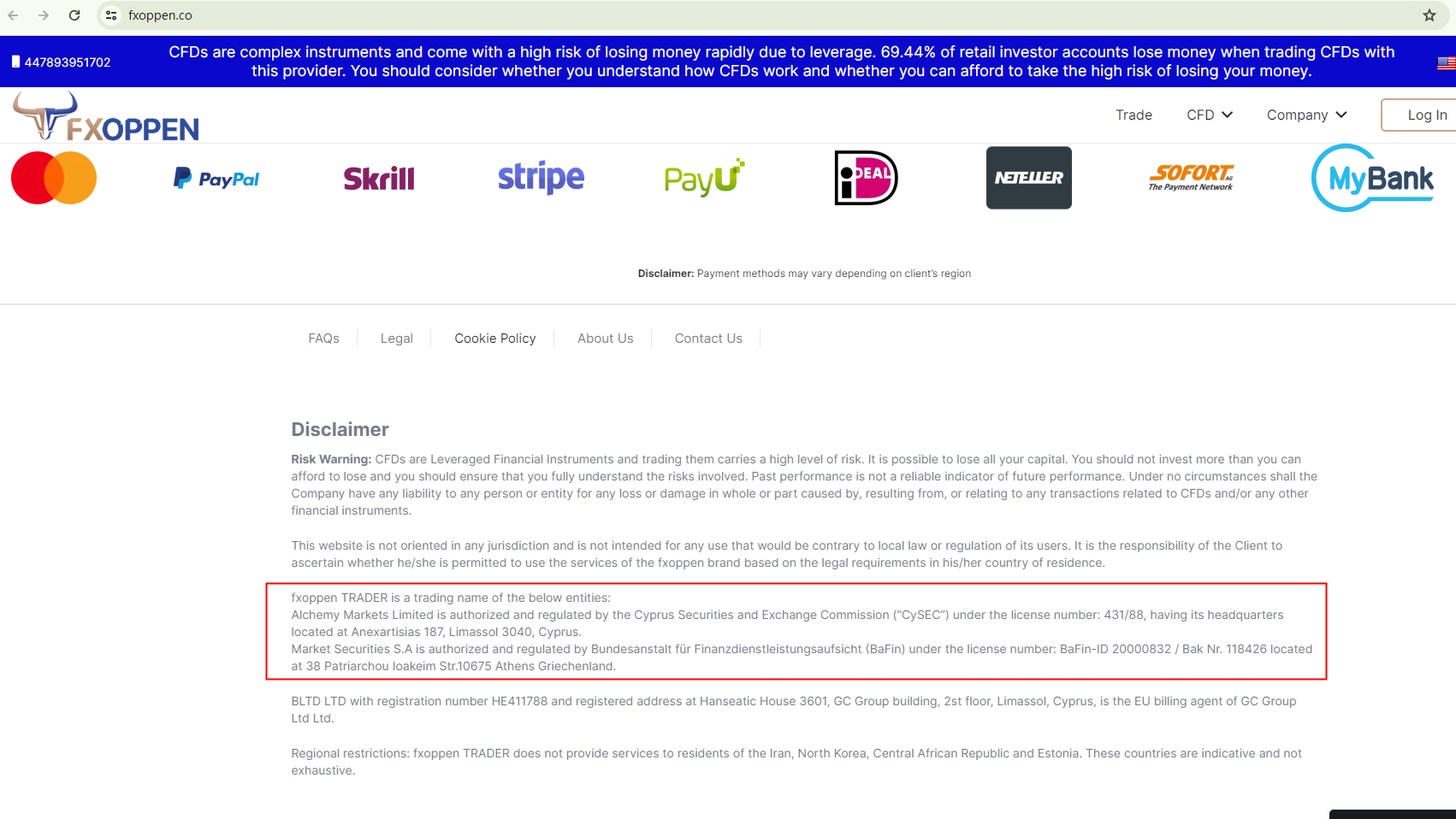 However, our investigations indicate that there are no corresponding records from the CySEC and BaFin does not regulate Market Securities S.A. Moreover, the German financial authority cautions that fraudsters may use officially published data to gain investors' trust, which appears to be the case with FX Oppen. The Financial Conduct Authority (FCA) has identified FX Oppen as a clone firm, unauthorizedly using the information of an FCA-authorized entity to appear legitimate.