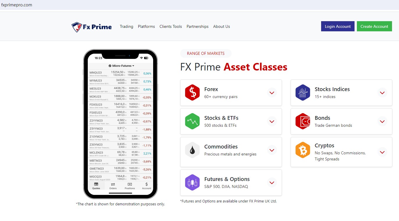 Fx Prime Pro claims to be the trading name of the Fx Prime Group of Companies. It is owned and operated within the Fx Prime Group. The group includes Prime Fx Ltd, regulated by the Financial Conduct Authority (FCA) in the UK, offering wide range of financial services, including Forex, Stock Indices, Commodities, Bonds, Cryptocurrencies, Stocks and more instruments in global markets.