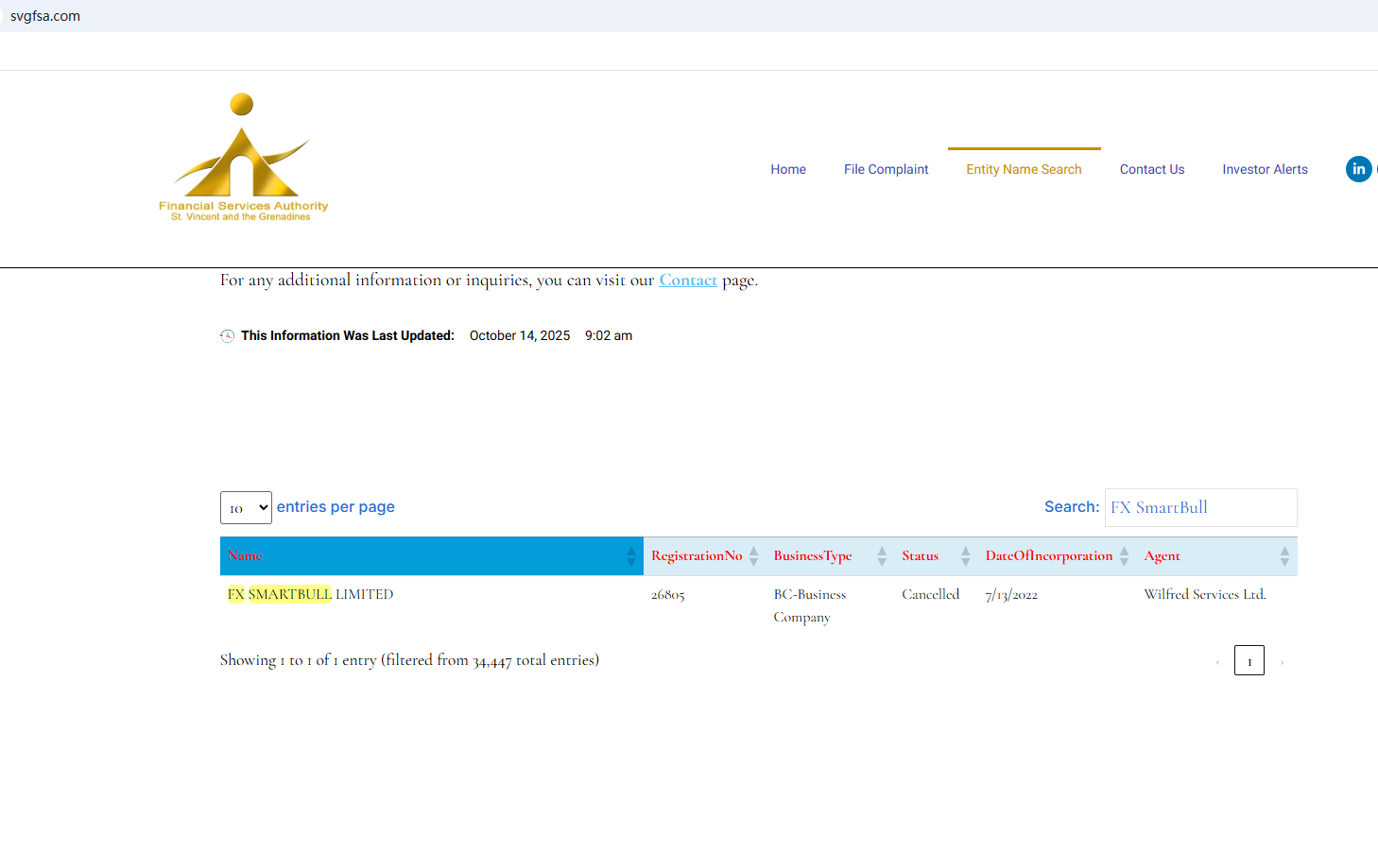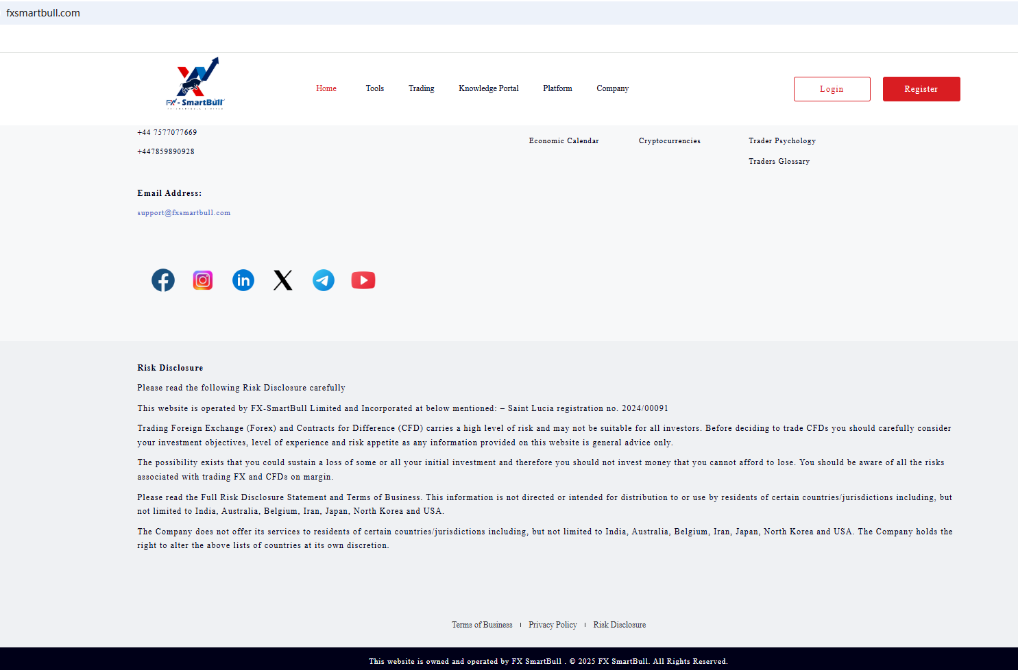 FX SmartBull remains active. According to its website, it only provides a certificate from Saint Lucia, a country known for its lack of forex regulation. Beyond that, there's no other compelling regulatory information to support its compliance. FX SmartBull's previously claimed St. Vincent and the Grenadines Financial Services Authority (SVG FSA) regulatory status has also been "canceled." Entrusting investor funds to this company is extremely risky due to the lack of legal safeguards. FX SmartBull is a scam.