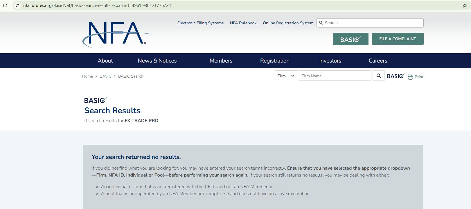 While Fx Trade Pro claims to be domiciled in the US, there are no indications that it is registered as a member of the National Futures Association (NFA). This means it is not subject to the NFA's oversight.