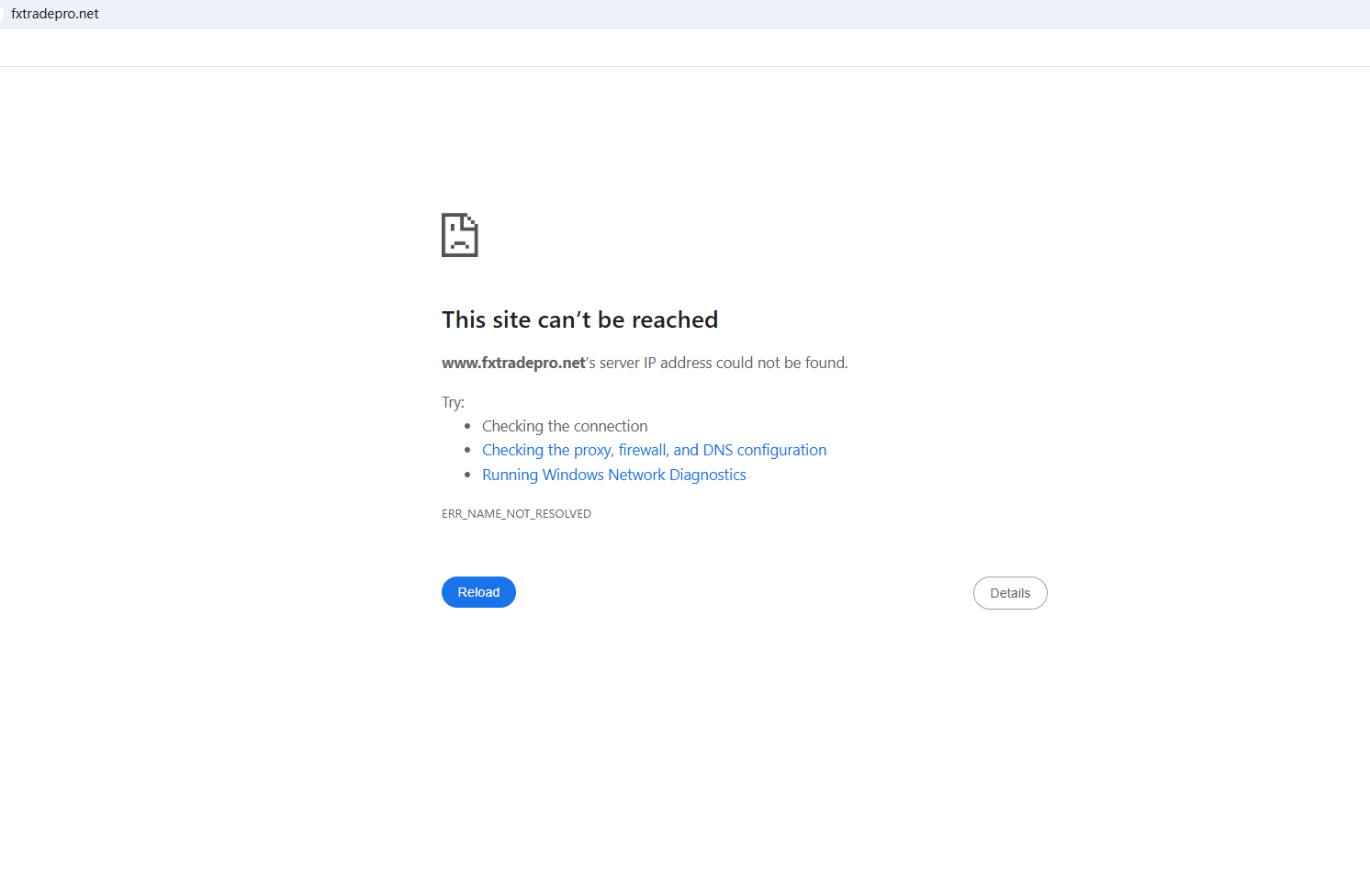 BrokersView found that the domain "fxtradepro.net" is currently inaccessible. This is widely regarded as a significant red flag, as the suspension of a broker's website often points to underlying regulatory or operational issues.